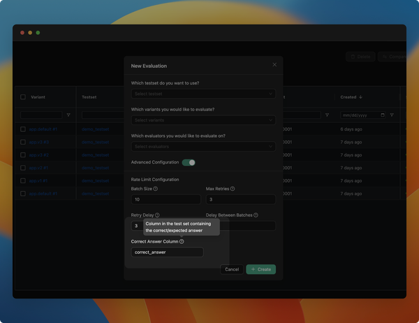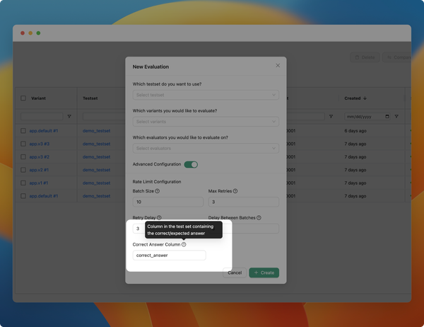 We have added a new evaluator to match JSON fields and added the possiblity to use other columns in the test set other than the correct_answer column as the ground truth.